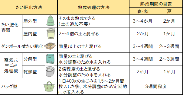 たい肥化別熟成方法