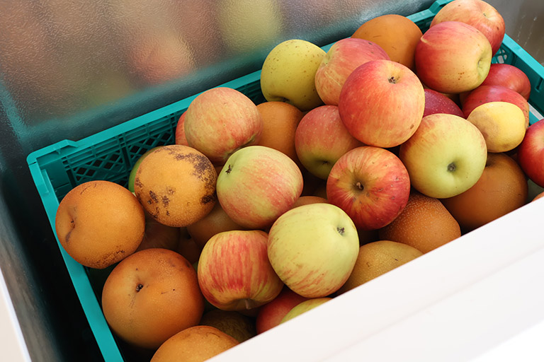 「このイベントをきっかけに、『フードマーケットフジサキ』さんから毎週見切り品を仕入れられるようになりました。1回におよそ20kgを引き取り、ほとんどをドライ加工しています。」