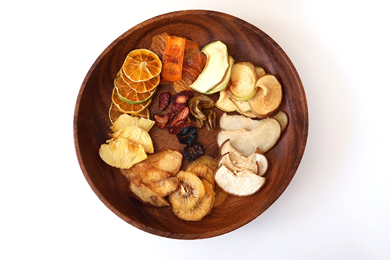 スライスは約15~16時間、粒状のものは数日かけて丁寧に乾燥。手間を惜しまない工程から、おいしさが凝縮されたドライフルーツが生まれます。その工程は、今なおブラッシュアップ中。より質の高いドライフルーツの製造をめざし、試行錯誤を続けています。