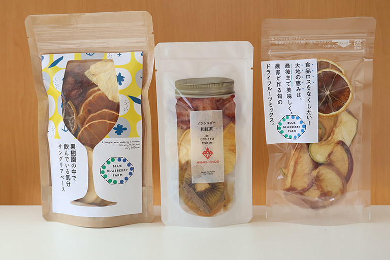 「一般的な農家だとブルーベリー以外の青果物も生産すると思いますが、僕は農業より会社員経験のほうが長い。それを活かすには農産加工品の製造や販売も手掛けるのがいいんじゃないか、と考えました。それに、もったいないことが昔からすごく嫌いなんです。マイナスをプラスに変えるときに一番モチベーションが上がるので、ドライフルーツならそれが実現できると思いました。」